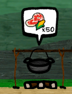 Villager's hunger bar slowly ticks down and eating food cooked using the cooking pot building restores hunger. (click on the popup to start cooking)